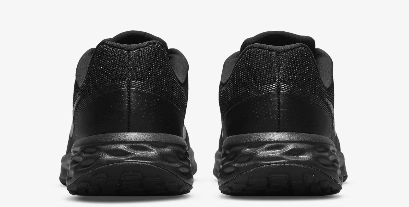 A foam midsole delivers a softer ride than the Revolution 5. The outsole has a computer-generated design that creates a natural piston effect as you run, providing more cushioning and flexibility. They combine for durable traction.