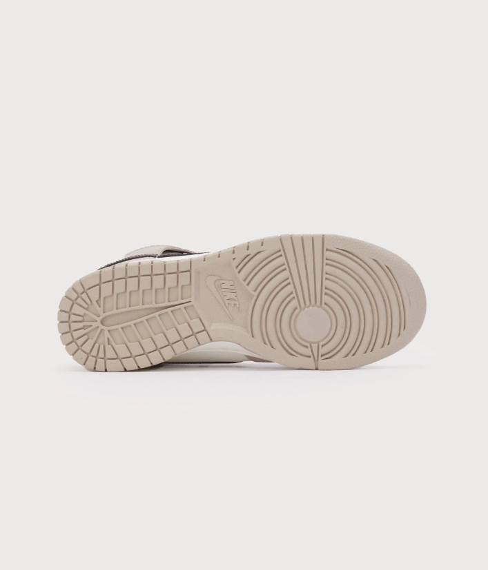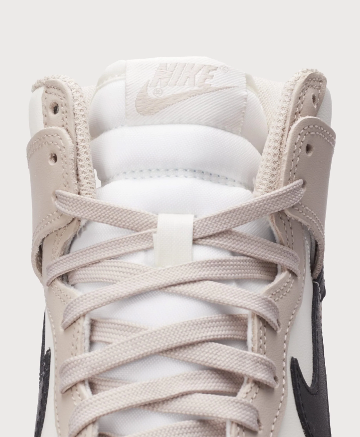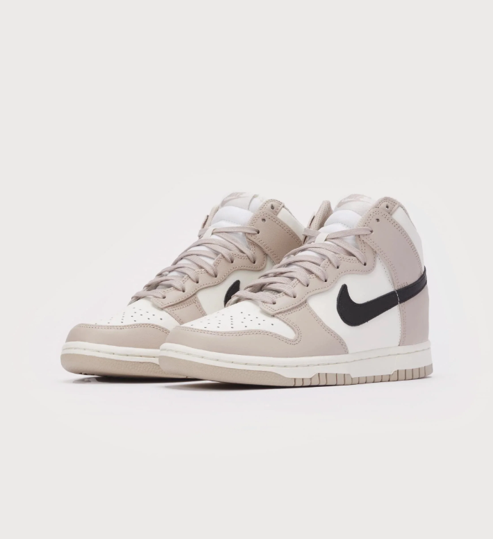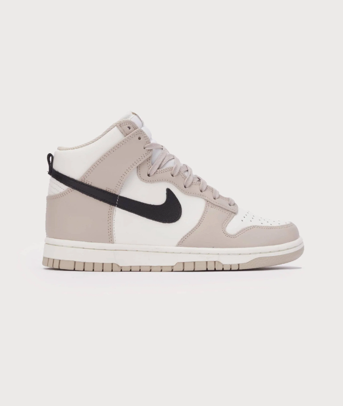 The '80s basketball icon is back in a new colorway. This women's Nike Dunk High is done in a clean "Fossil Stone" color scheme and features a smooth leather upper.