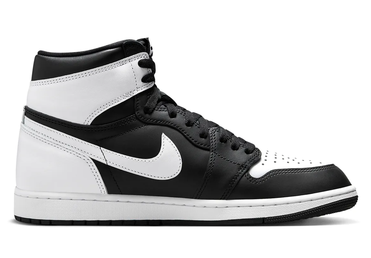 Detailed in our Air Jordan Spring 2024 Preview from earlier this year, the Air Jordan 1 “Black/White” combines the color blocking of the “Bred” with the palette of the ubiquitous “Panda” colorway. In place of red, the Swoosh, heel counter, ankle flaps, and toe box all opt for a neutral white finish, matching that of the midsole and the Nike Air branding along the tongue. Black, then, rounds out the design of the shoe, dressing the Wings, outsole, and much of everything in between.