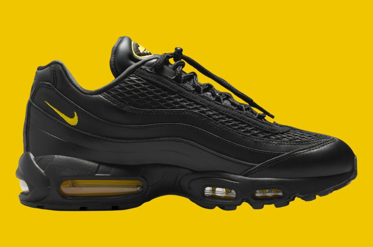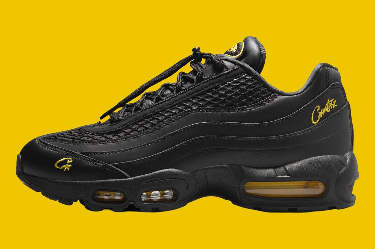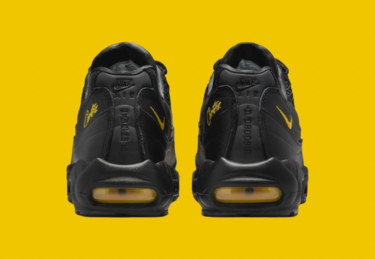This new iteration boasts a sleek Black and Tour Yellow palette. Despite no leaked images yet, expect the Nike Air Max 95 to feature drawcord lacing securing its leather upper. Inside, a camouflage lining adds a military-inspired touch. Look for the shoe to sport an embroidered Corteiz wordmark and the brand’s Alcatraz logo on the tongue patch. To ensure comfort, a solid Black rubber sole with Tour Yellow Air Max units is incorporated, offering a comfortable ride. Additionally, it will be packaged in co-branded boxes with camouflage-themed tissue paper.