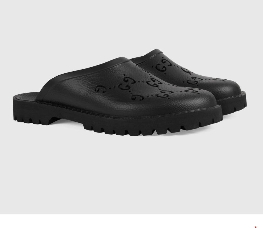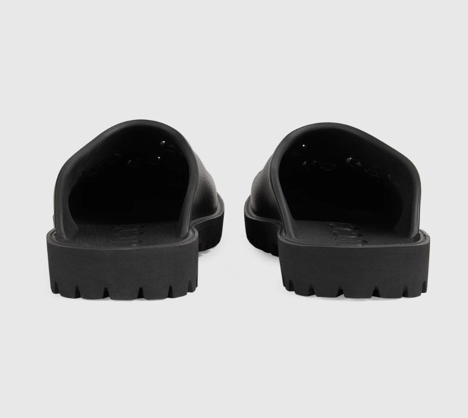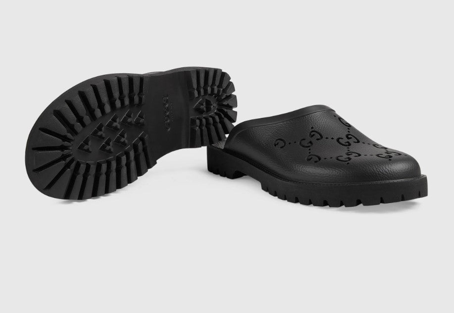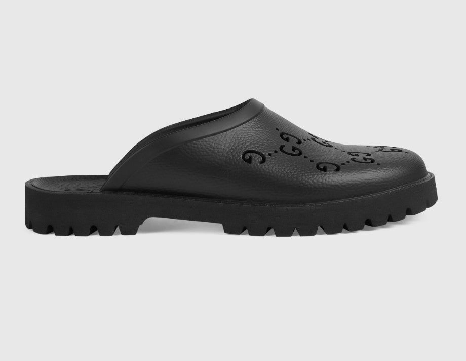 First used in the 1970s, the GG logo was an evolution of the original Gucci rhombi design from the 1930s, and from then it's been an established symbol of Gucci's heritage that evolves each season. Here, the monogram appears as a cut out motif atop these black rubber sandals.